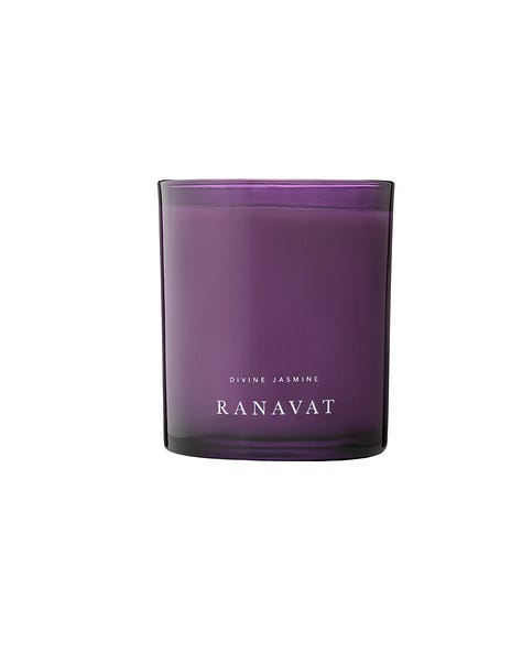 Ranavat Jasmine Ritual - jasmine, the “queen of the night,” will fill any room with an intoxicating, festive aroma. This candle takes me back to my wedding, where fresh jasmine flowers set the mood for an elegant evening.