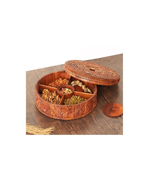 Carved Spice Box - every spice lover deserves a beautiful masala dhabba. Often passed down through generations, this one is equal parts art and tradition, sure to become a family heirloom.