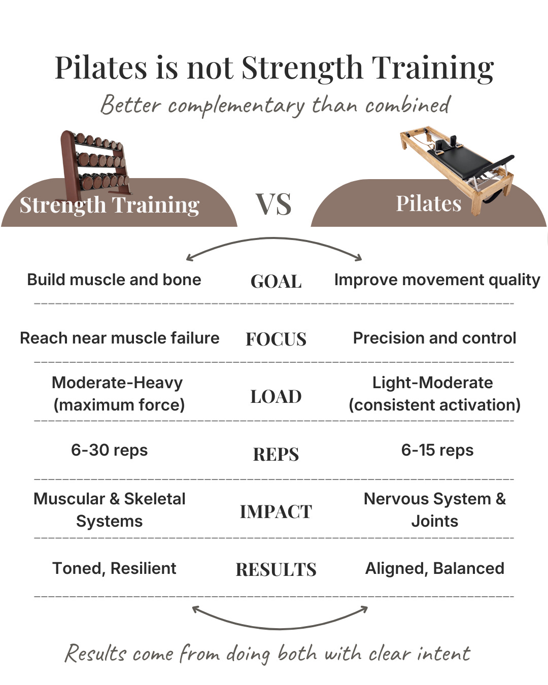 This is why I recommend my clients let Pilates be Pilates. Let strength training be strength training. And allow them to complement each other.