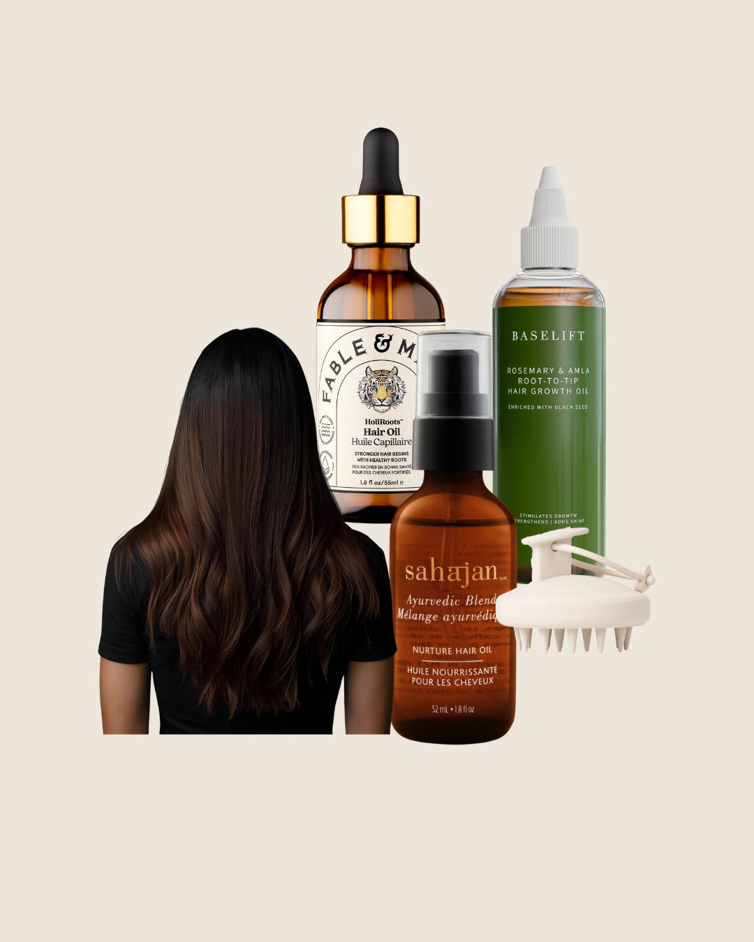 Fable and Mane Holi Roots, Base Lift Hair Oil, Sahajan Hail Oil, Aimike Scalp Massager